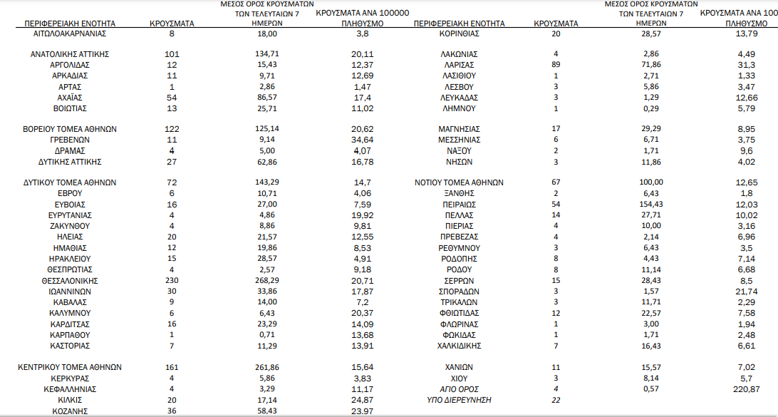 Η γεωγραφική κατανομή των 1449 κρουσμάτων.607 στην Αττική(ΠΙΝΑΚΑΣ)