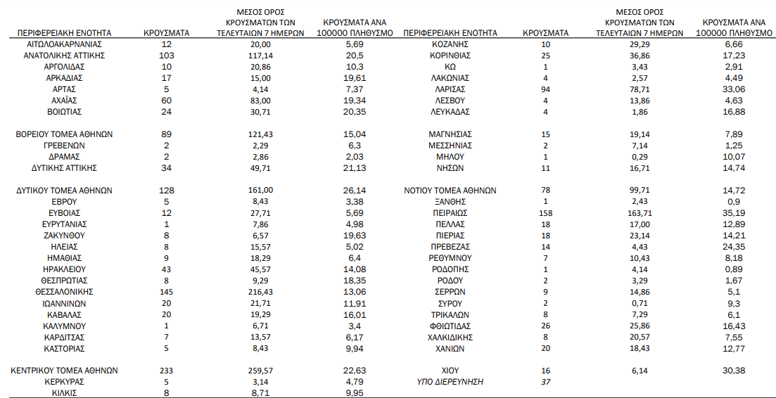 Η γεωγραφική κατανομή των 1626 κρουσμάτων.834 στην Αττική (ΠΙΝΑΚΑΣ)