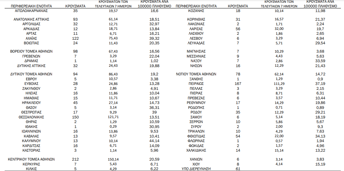 Η γεωγραφική κατανομή των 1790 κρουσμάτων.790 στην Αττική(Πίνακας)