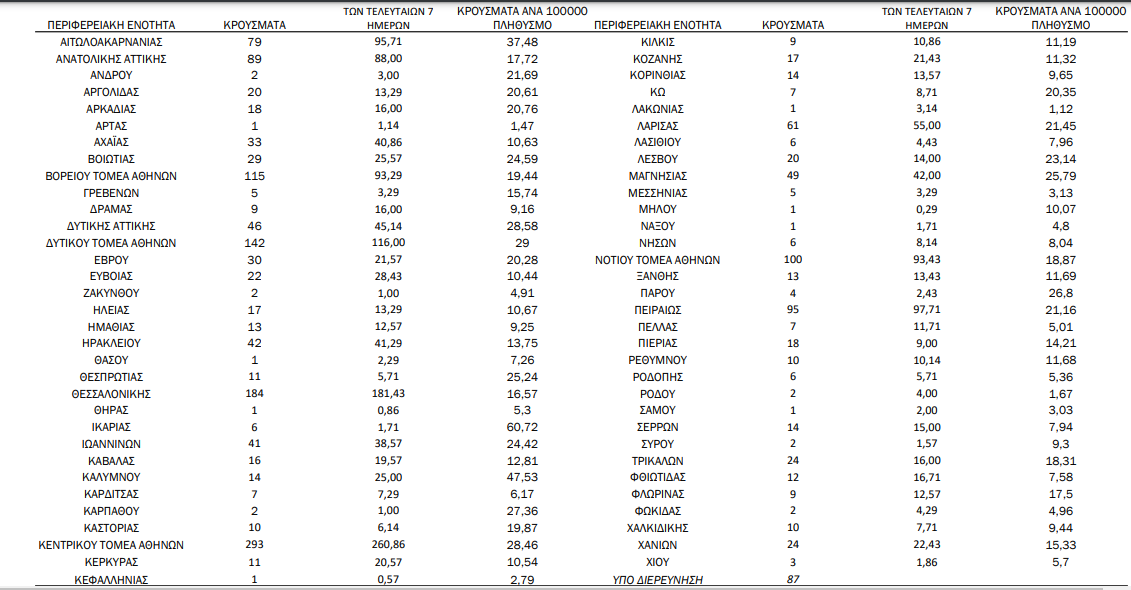 Η γεωγραφική κατανομή των 1957 κρουσμάτων. 886 στην Αττική(ΠΙΝΑΚΑΣ)
