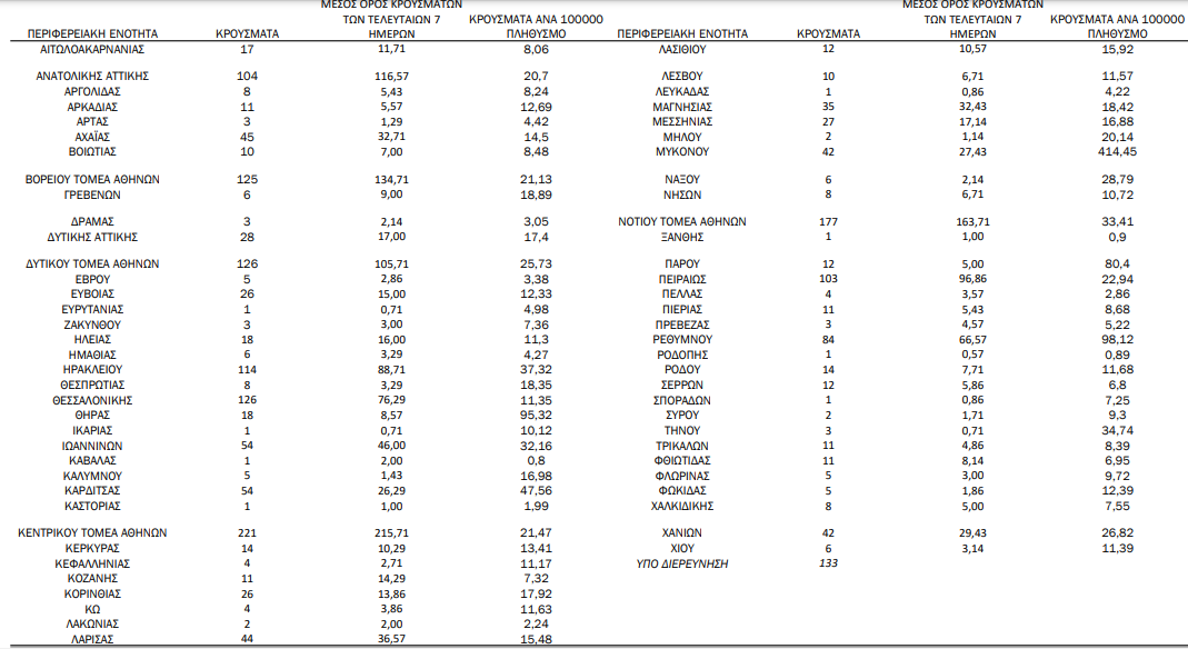 Η γεωγραφική κατανομή των 2.065 κρουσμάτων.892 στην Αττική (ΠΙΝΑΚΑΣ)
