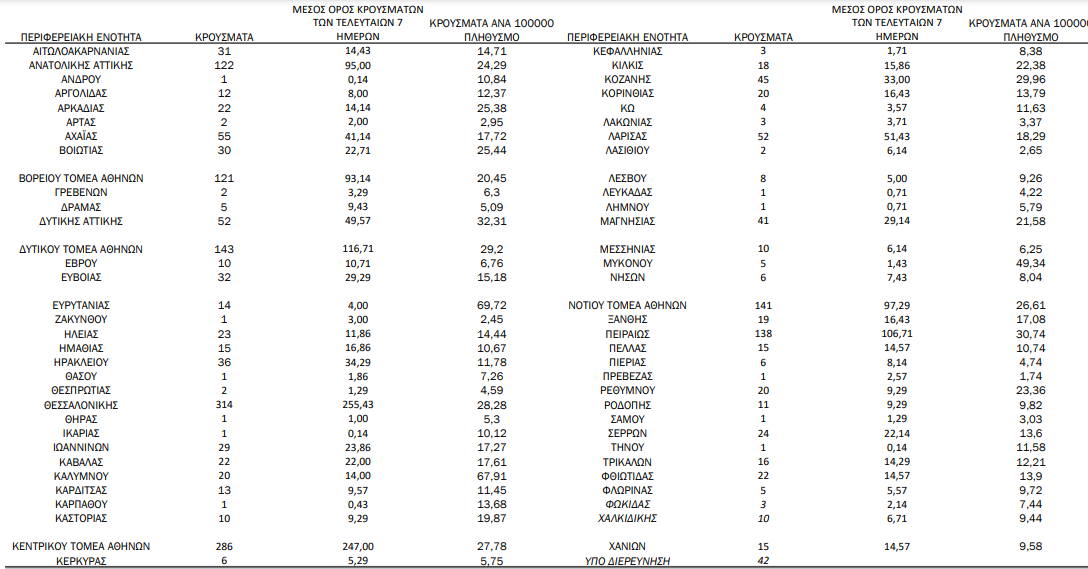 Η γεωγραφική κατανομή των 2.155 κρουσμάτων. 1009 στην Αττική (ΠΙΝΑΚΑΣ)