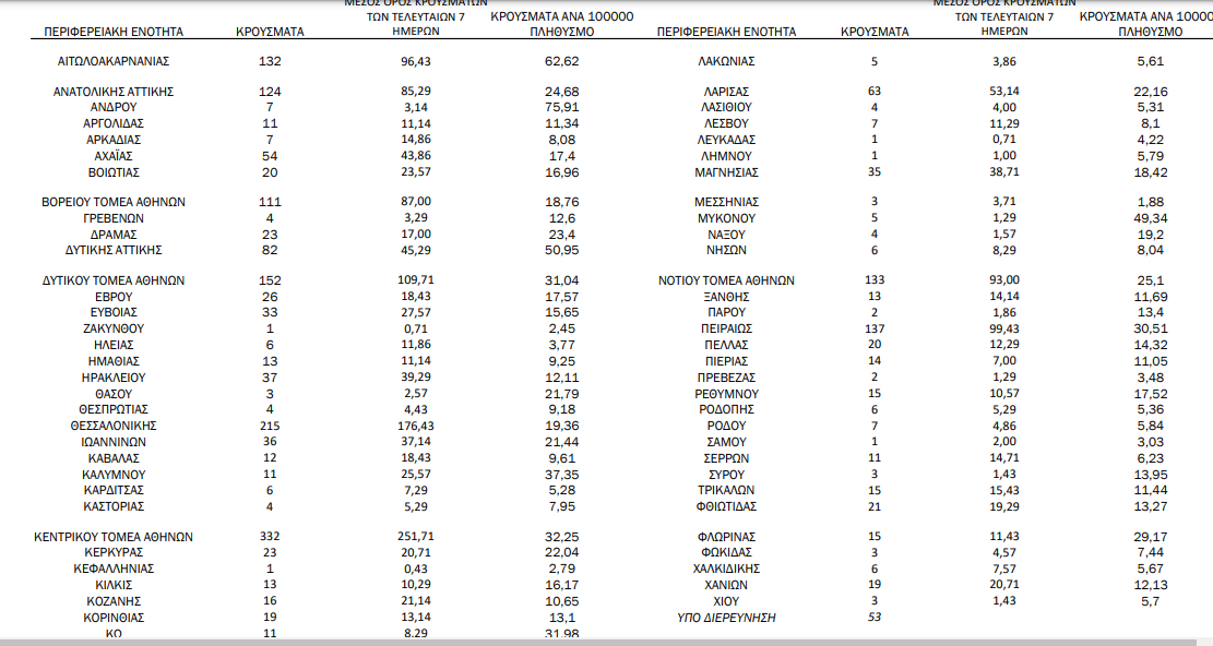 Η γεωγραφική κατανομή των 2.188 κρουσμάτων.1077 στην Αττική (ΠΙΝΑΚΑΣ)