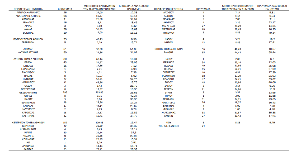 Η γεωγραφική κατανομή των 2.190 κρουσμάτων.531 στην Αττική (ΠΙΝΑΚΑΣ)