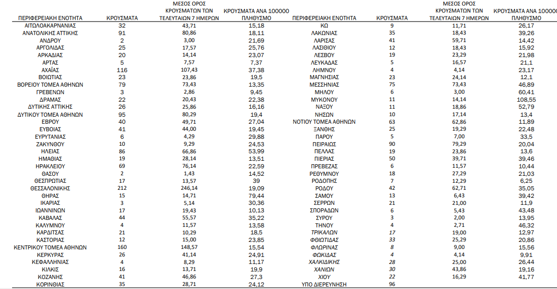 Η γεωγραφική κατανομή των 2.343 κρουσμάτων. 614 στην Αττική(ΠΙΝΑΚΑΣ)
