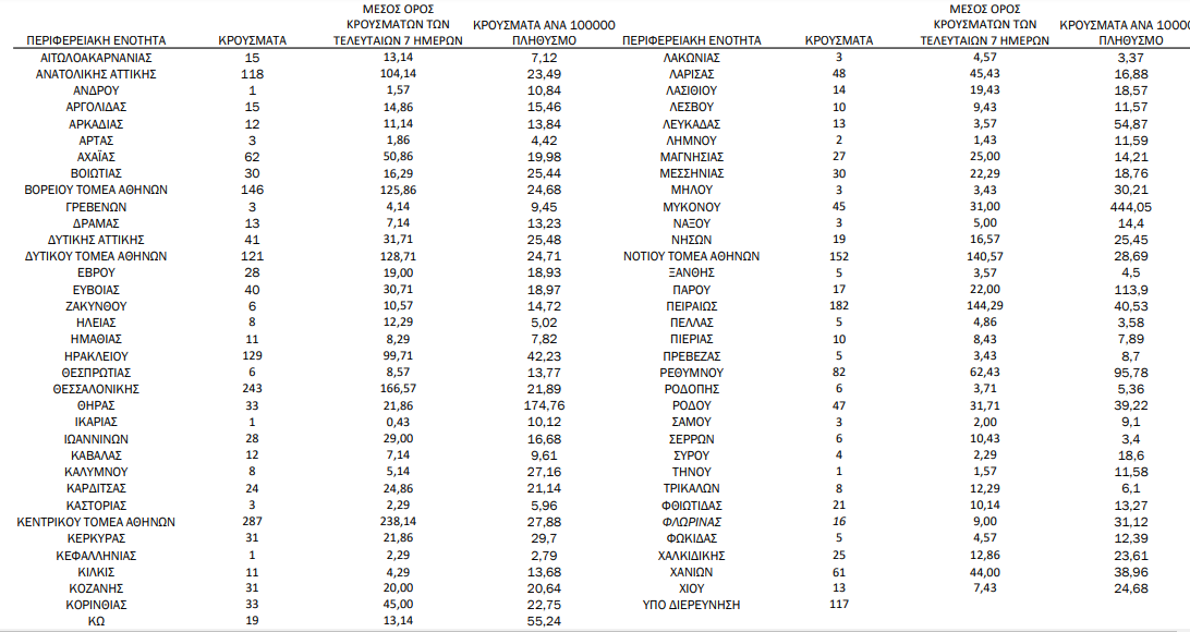 Η γεωγραφική κατανομή των 2.604 κρουσμάτων. 1.066 στην Αττική(ΠΙΝΑΚΑΣ)