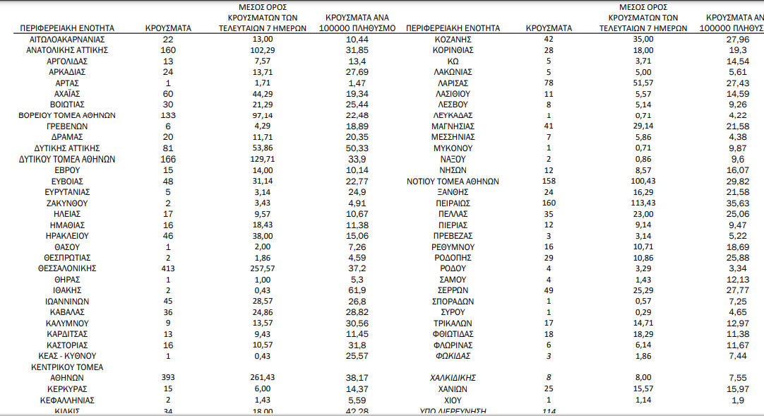 Η γεωγραφική κατανομή των 2.781 κρουσμάτων. 1263 στην Αττική(ΠΙΝΑΚΑΣ)