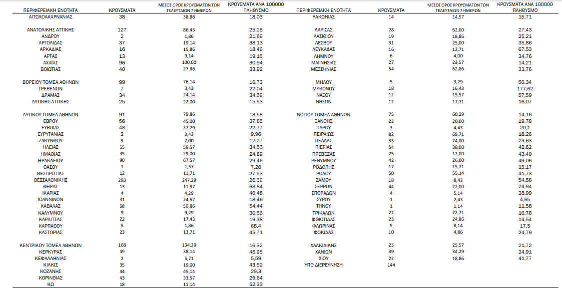 Η γεωγραφική κατανομή των 2.840 κρουσμάτων. 679 στην Αττική(ΠΙΝΑΚΑΣ)