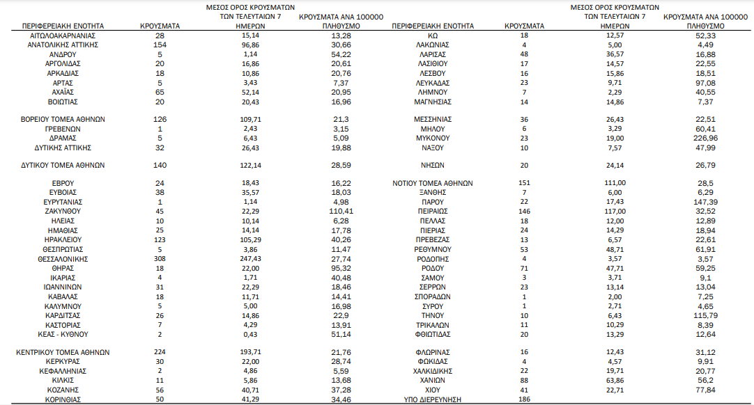 Η γεωγραφική κατανομή των 2.874 κρουσμάτων. 993 στην Αττική(ΠΙΝΑΚΑΣ)