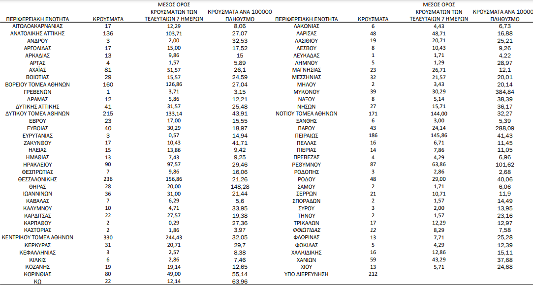 Home›Ελλαδα›Η γεωγραφική κατανομή των 2.972 κρουσμάτων. (ΠΙΝΑΚΑΣ)