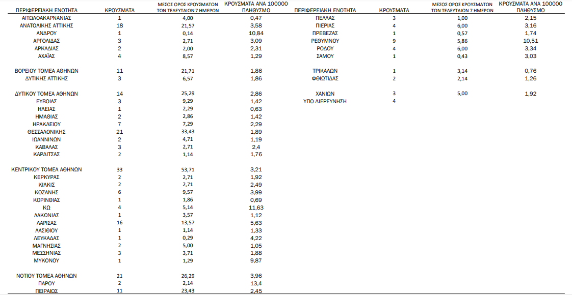 Η γεωγραφική κατανομή των 248 κρουσμάτων. 111 στην Αττική(ΠΙΝΑΚΑΣ)