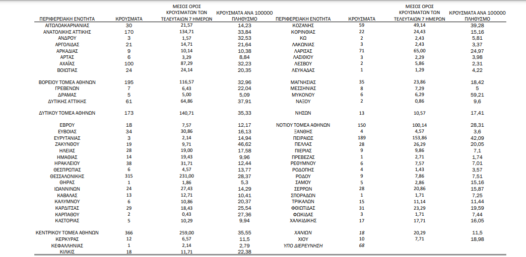 Η γεωγραφική κατανομή των 2588 κρουσμάτων. 1317 στην Αττική(ΠΙΝΑΚΑΣ)