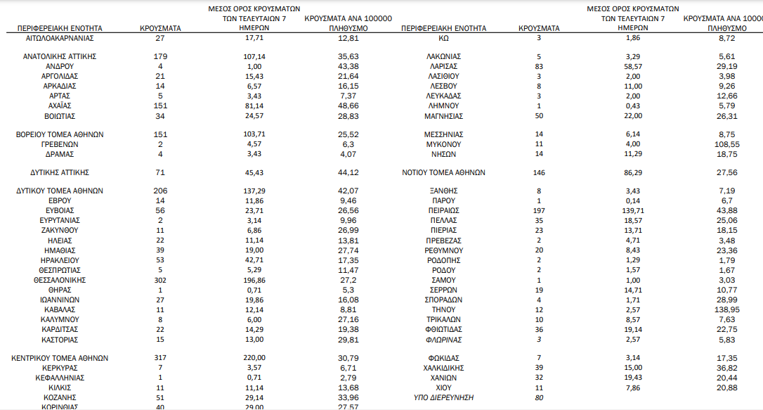 Η γεωγραφική κατανομή των 2785 κρουσμάτων.1281 στην Αττική(ΠΙΝΑΚΑΣ)