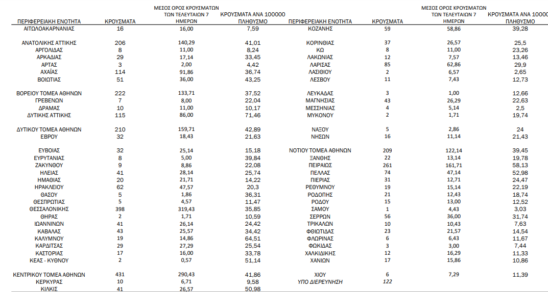 Η γεωγραφική κατανομή των 3.445 κρουσμάτων.1670 στην Αττική(ΠΙΝΑΚΑΣ)