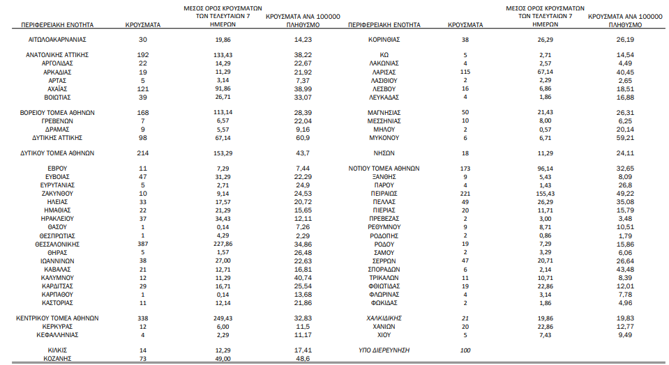 Η γεωγραφική κατανομή των 3062 κρουσμάτων. 1422 στην Αττική(ΠΙΝΑΚΑΣ)