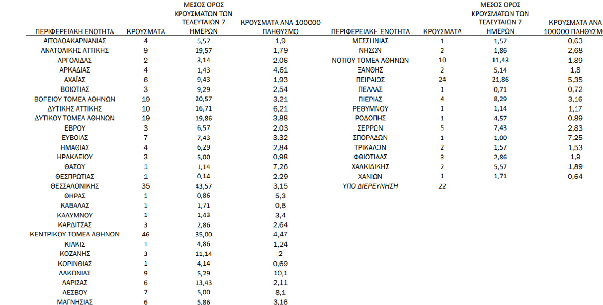 Η γεωγραφική κατανομή των 320 κρουσμάτων.137 στην Αττική, 35 στη Θεσ/νίκη