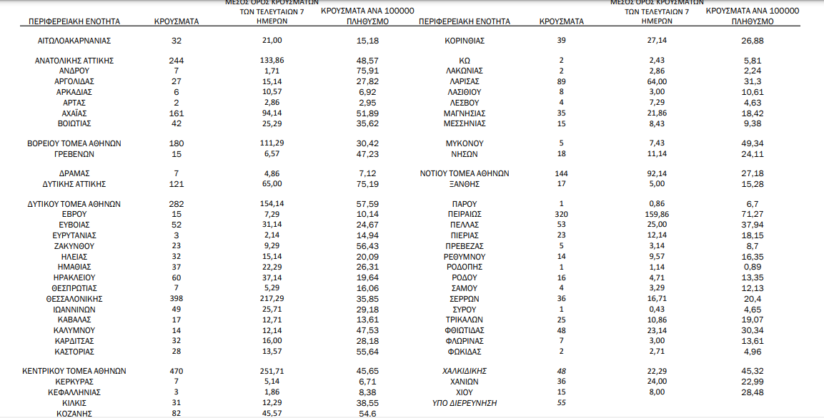Η γεωγραφική κατανομή των 3586 κρουσμάτων. 1779 στην Αττική(ΠΙΝΑΚΑΣ)