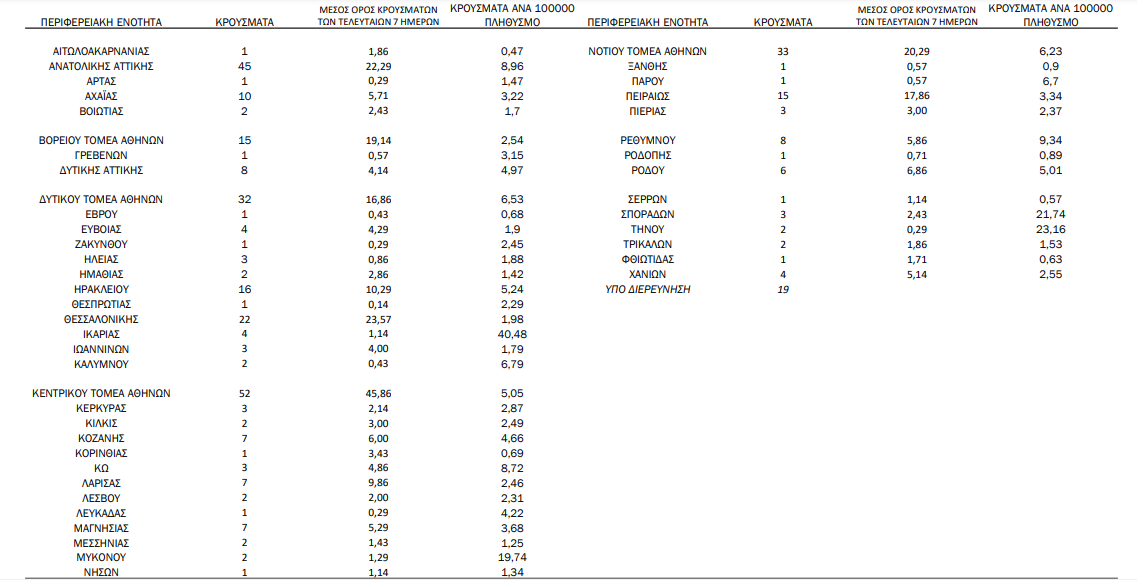 Η γεωγραφική κατανομή των 375 κρουσμάτων. 201 στην Αττική(ΠΙΝΑΚΑΣ)