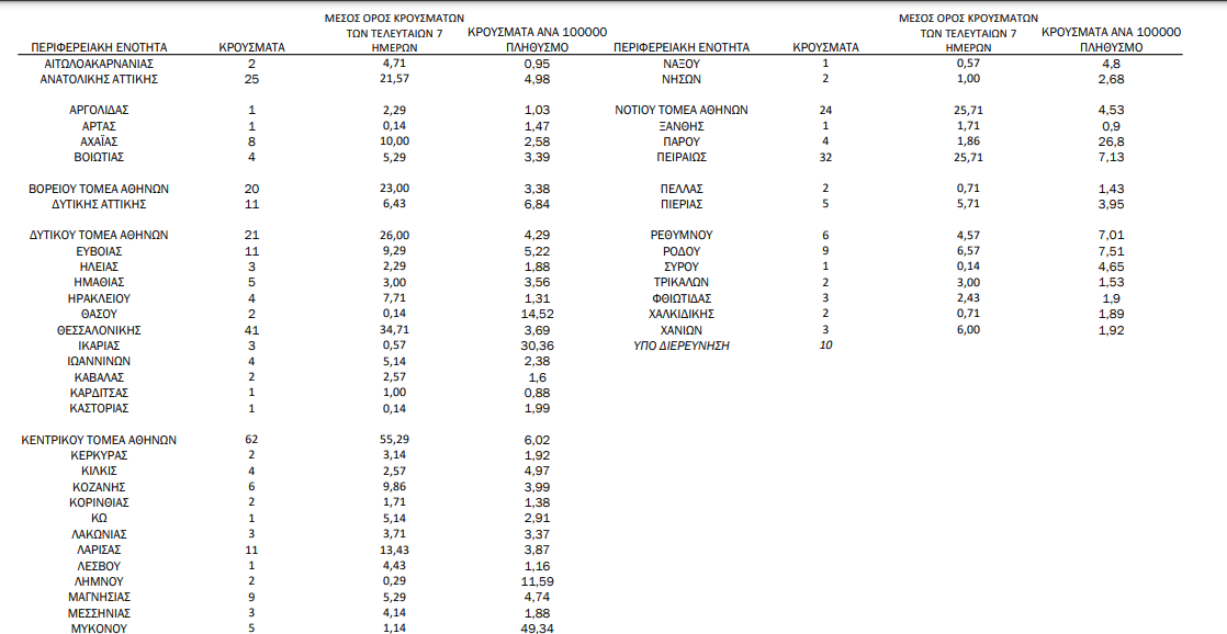 Η γεωγραφική κατανομή των 394 κρουσμάτων. 197 στην Αττική(ΠΙΝΑΚΑΣ)