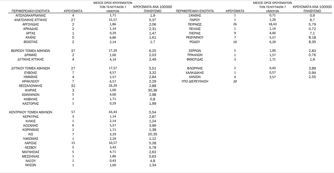 Η γεωγραφική κατανομή των 406 κρουσμάτων. 213 στην Αττική(ΠΙΝΑΚΑΣ)
