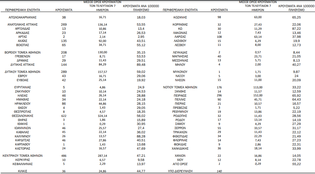 Η γεωγραφική κατανομή των 4309 κρουσμάτων.1883 στην Αττική(ΠΙΝΑΚΑΣ)