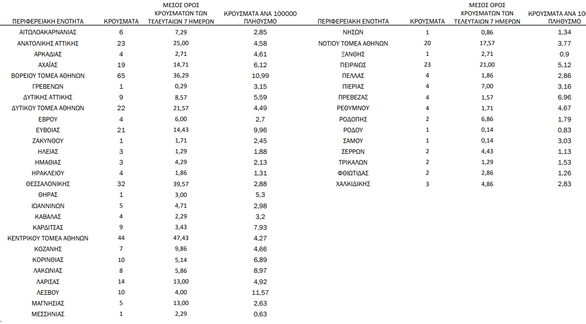 Η γεωγραφική κατανομή των 436 κρουσμάτων.207 στην Αττική, 32 στη Θεσ/νίκη