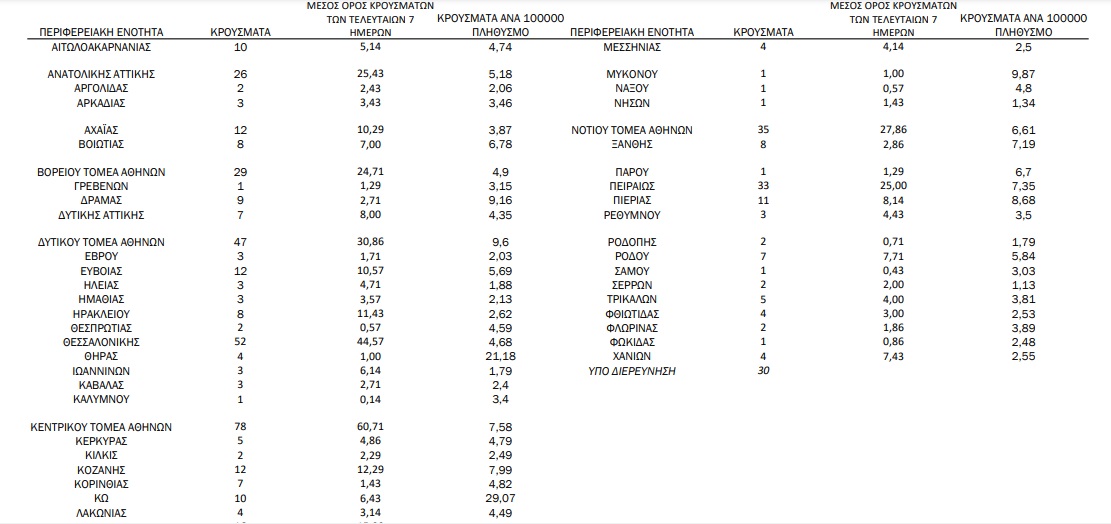 Η γεωγραφική κατανομή των 519 κρουσμάτων. 252 στην Αττική (ΠΙΝΑΚΑΣ)