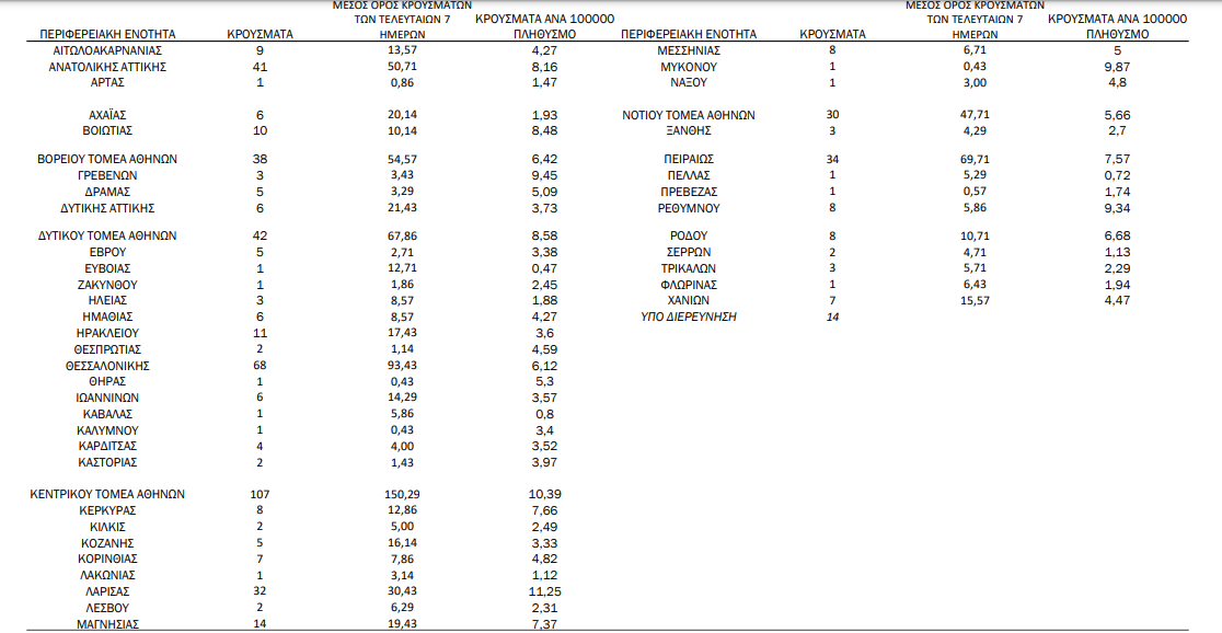 Η γεωγραφική κατανομή των 580 κρουσμάτων. 298 στην Αττική (ΠΙΝΑΚΑΣ)