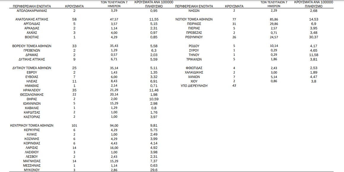 Η γεωγραφική κατανομή των 619 κρουσμάτων. 336 στην Αττική (ΠΙΝΑΚΑΣ)