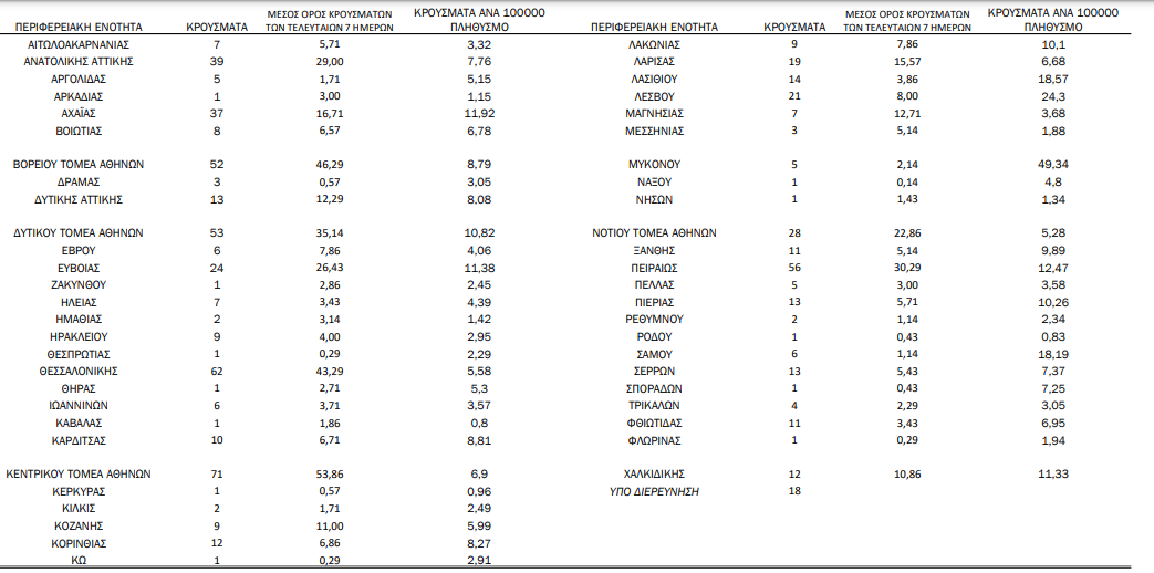 Η γεωγραφική κατανομή των 716 κρουσμάτων.313 στην Αττική, 62 στη Θεσ/νίκη