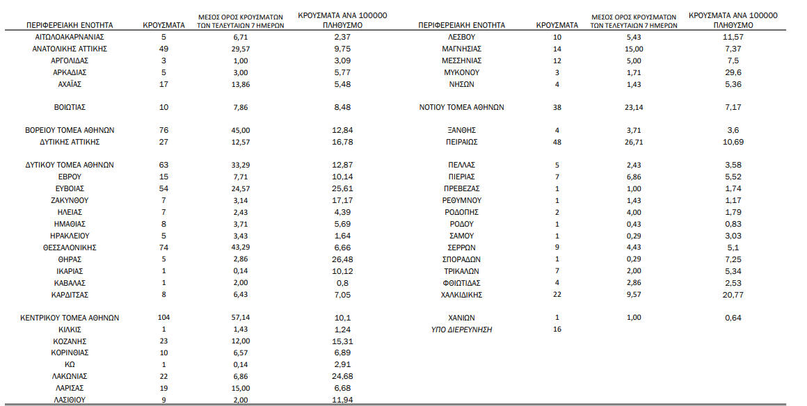 Η γεωγραφική κατανομή των 858 κρουσμάτων.409 στην Αττική, 74 στη Θεσ/νίκη