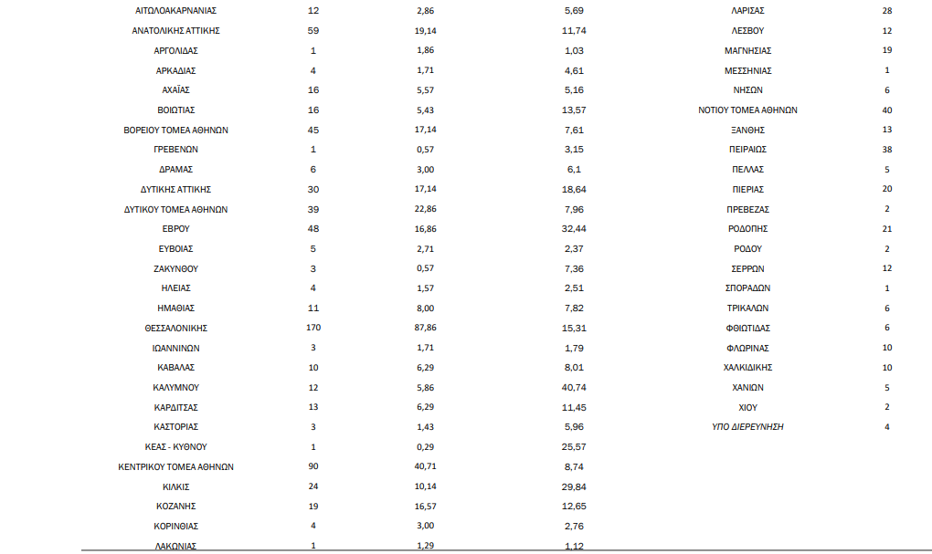 Η γεωγραφική κατανομή των 942 κρουσμάτων. 341 στην Αττική, 170 στη Θεσσαλονίκη