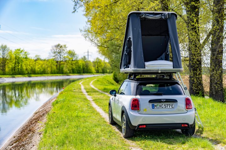 Το MINI Cooper SE μπορεί επίσης να εξοπλιστεί με σκηνή οροφής. Το αμιγώς ηλεκτρικό μικρό αυτοκίνητο είναι το μόνο στην άκρως ανταγωνιστική κατηγορία του που δέχεται ράγες οροφής. Το ειδικό σύστημα στήριξης περιλαμβάνεται στην γκάμα Γνήσιων Αξεσουάρ MINI. Το MINI Cooper SE μπορεί εύκολα να μεταφέρει σκηνή οροφής. Χάρη στο αεροδυναμικό της σχήμα, η οροφή δεν επηρεάζει σημαντικά τις επιδόσεις του κινητήρα των 135 kW/184 hp, ο οποίος εξασφαλίζει εντυπωσιακή επιτάχυνση. Το MINI Cooper SE επιταχύνει από 0-100 km/h σε 7,3 δευτερόλεπτα. Το MINI Cooper SE Countryman ALL4 επίσης διακρίνεται για την ήρεμη δύναμη του κινητήριου συνόλου. Ένα αυτοκίνητο για κάθε χρήση, ιδανικό και για μεγάλα ταξίδια.