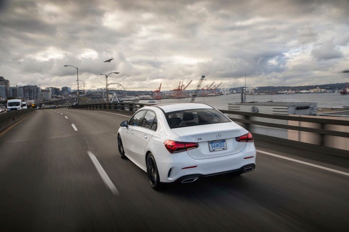 Η νέα A-Class Sedan εκμεταλλεύεται τις ιδανικές συνθήκες που της προσφέρει το μακρύ πίσω μέρος και καταφέρνει να «κερδίσει» ακόμα και τις ήδη υποδειγματιές επιδόσεις της A-Class hatchback (τιμή cw 0,25). Θέτοντας το οροσημο στην κατηγορία της, με τιμή Cd = 0.22 αυτή η νέα λιμουζίνα έρχεται ισόπαλη με το παγκόσμιο ρεκόρ της CLA Coupé. Εξαιτίας του εμπρός της μέρους, επιφάνειας 2,19 m², που είναι μικρότερο από αυτό της CLA, η A-Class Sedan διαθέτει τη χαμηλότερη αεροδυναμική αντίσταση από όλα τα αυτοκίνητα παραγωγής παγκοσμίως.