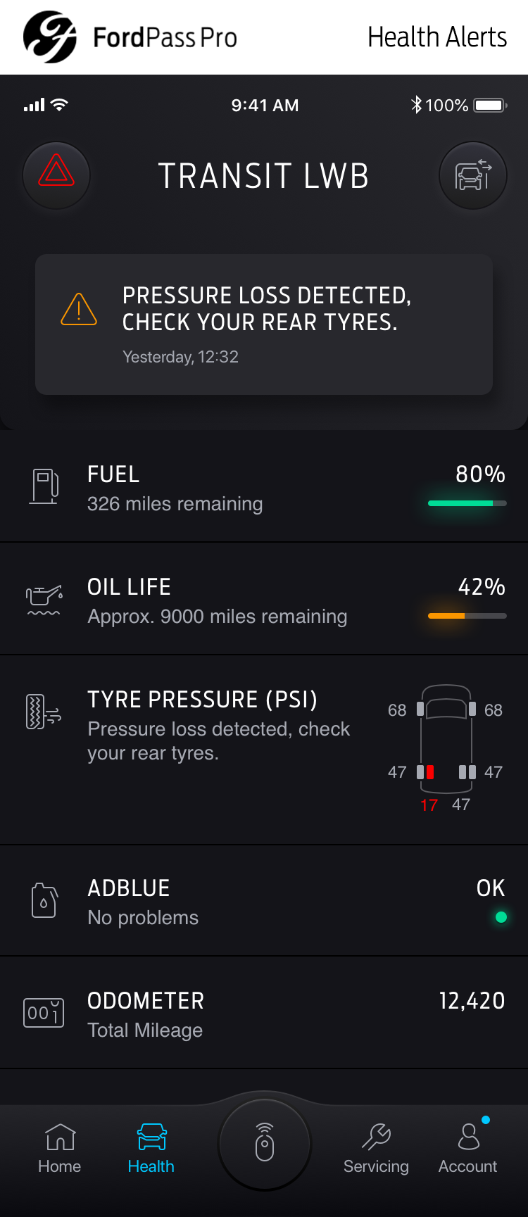 Η εφαρμογή FordPass Pro παρέχει τα εργαλεία που χρειάζονται οι επιχειρήσεις για να διαχειριστούν μέχρι και πέντε οχήματα από μόλις μία φιλική προς το χρήστη διεπαφή. Μεταξύ των λειτουργιών είναι: