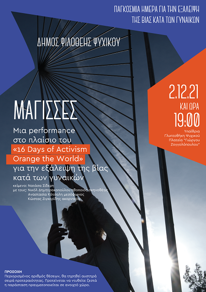 Το δρώμενο μετατρέπει την Υπαίθρια Γλυπτοθήκη Ψυχικού σε σκηνικό χώρο, δίπλα στο γλυπτό Ποσειδώνας του Γεωργίου Ζογγολόπουλου . Οι “ Μάγισσες” της επόχης μας, που γράφτηκαν με αφορμή τα πρόσφατα γεγονότα βίας κατά των γυναικών στη χώρα μας, συνομιλούν με μπαροκ μουσικά σπαράγματα και ελεύθερους αυτοσχεδιασμούς. Θραύσματα απώλειας, μνήμης και απουσίας γυναικών που δεν πρέπει να ξεχαστούν, ζητήματα έμφυλης βίας ως ολοζώντανα αιτήματα του παρόντος, πλημμυρίζουν τη γλυπτοθήκη Ζογγολόπουλου, συνδιαλέγονται με την συναρπαστική ιστορία του δημιουργού της.