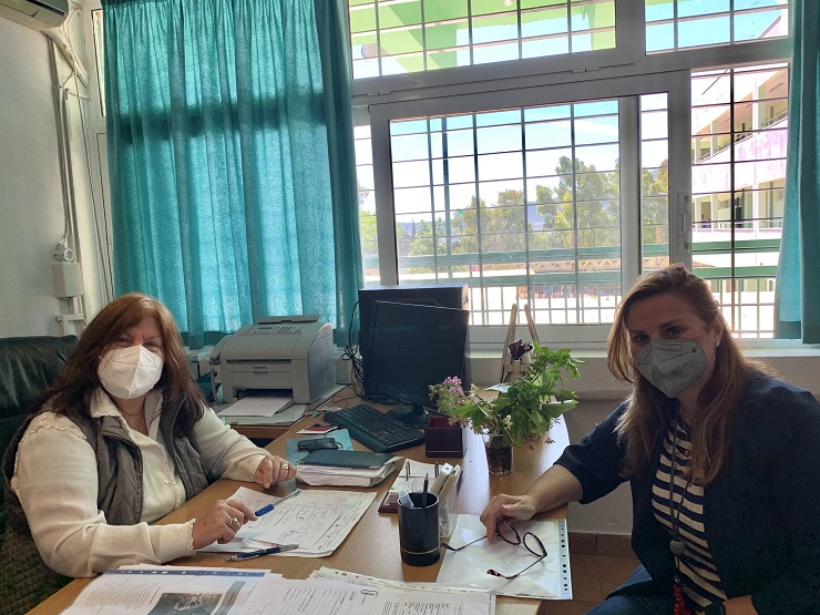 Ενημέρωσε την κυρία Φαίνη Χατζηαθανασιάδου για τα προγράμματα που συμμετέχει το σχολείο, τις επιδόσεις των μαθητών, τα αριστεία και βραβεία που έχουν λάβει μαθητές ακόμη και εν μέσω πανδημίας.