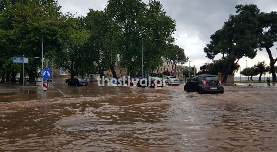 Κεντρικοί δρόμοι της Θεσσαλονίκης, όπως η Εγνατία, η Τσμισκή, Εθνικής Αμύνης και η Λεωφόρος Νίκης έχουν πλημμυρίσει.