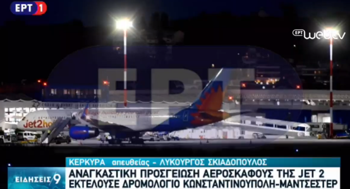 Αναγκαστική προσγείωση πραγματοποίησε λίγο μετά τις 8 στο αεροδρόμιο «Ι. Καποδίστριας» της Κέρκυρας, αεροσκάφος της εταιρείας JET-2 που πραγματοποιούσε το δρομολόγιο από το Νταλαμάν (απέναντι από τη Ρόδο) προς το Μάντσεστερ με 235 επιβάτες.
