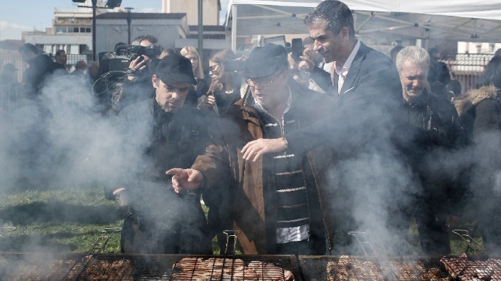 Έχουμε παράδοση στις Απόκριες, αλλά έχουμε και πολλά σύγχρονα στοιχεία. Ξεκινάμε σήμερα, εδώ, στη Βαρβάκειο, που χτυπάει η καρδιά της πόλης. Ευχαριστούμε πολύ τον πρόεδρο και τους μαγαζάτορες για τη συνεργασία και όλοι ξέρουμε πολύ καλά ότι μόνο μαζί μπορούμε να πετύχουμε», ανέφερε ο δήμαρχος Αθηναίων, Κώστας Μπακογιάννης, φτάνοντας στο χώρο όπου είχαν τοποθετηθεί οι ψησταριές απέναντι από την Βαρβάκειο Αγορά, ενώ ο πρόεδρος της Ένωσης Κρεοπωλών Βαρβακείου Αγοράς, Κλεάνθης Τσιρώνης έκανε λόγο για «μια πετυχημένη διοργάνωση σε συνεργασία με το Δήμο». «Θέλω να πιστεύω ότι αυτό θα το καθιερώσουμε, και με περισσότερο μεράκι. Όλοι οι κρεοπώλες της Βαρβακείου Αγοράς “τσοντάραμε” κι έτσι ο κόσμος τρώει από αρνάκι γάλακτος μέχρι φτερούγες, να χαίρονται όσοι δεν μπορούν να πάνε σε ένα κέντρο να το απολαύσουν», επισήμανε ο κ. Τσιρώνης.