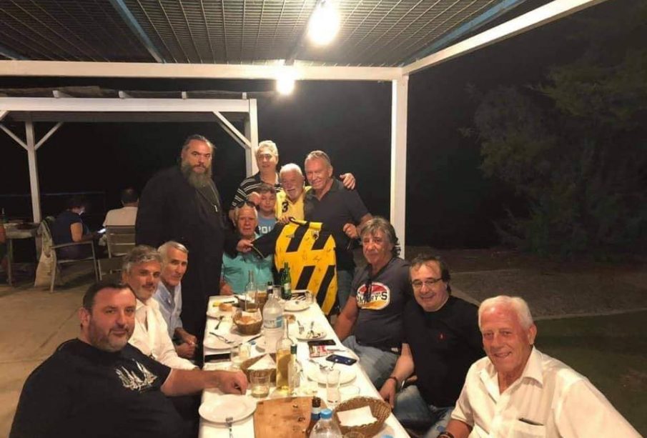 Ο Δήμαρχος Πέτρος Φιλίππου και ο πρόεδρος του Νομικού Προσώπου ”Αριστόδικος” Νίκος Πουλόπουλος υποδέχτηκαν χτες το βράδυ στη δημοτική επιχείρηση ”Κιόσκι”, αντιπροσωπεία των βετεράνων της ΑΕΚ, αποτελούμενη από τον πρόεδρο Στέλιο Σεραφείδη, τον Θωμά Μαύρο, τον Μιχάλη Σιμιγδαλά και το επίτιμο μέλος του συνδέσμου (πρώην Κοινοτάρχη Πολυδενδρίου) Θανάση Σακίρη. Παρόντες ήταν και φίλοι της ΑΕΚ από την περιοχή.