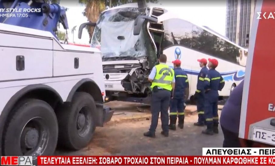 Σοβαρό τροχαίο σημειώθηκε νωρίς το πρωί στην Ακτή Μιαούλη στον Πειραιά, όταν τουριστικό λεωφορείο καρφώθηκε σε κολώνα.