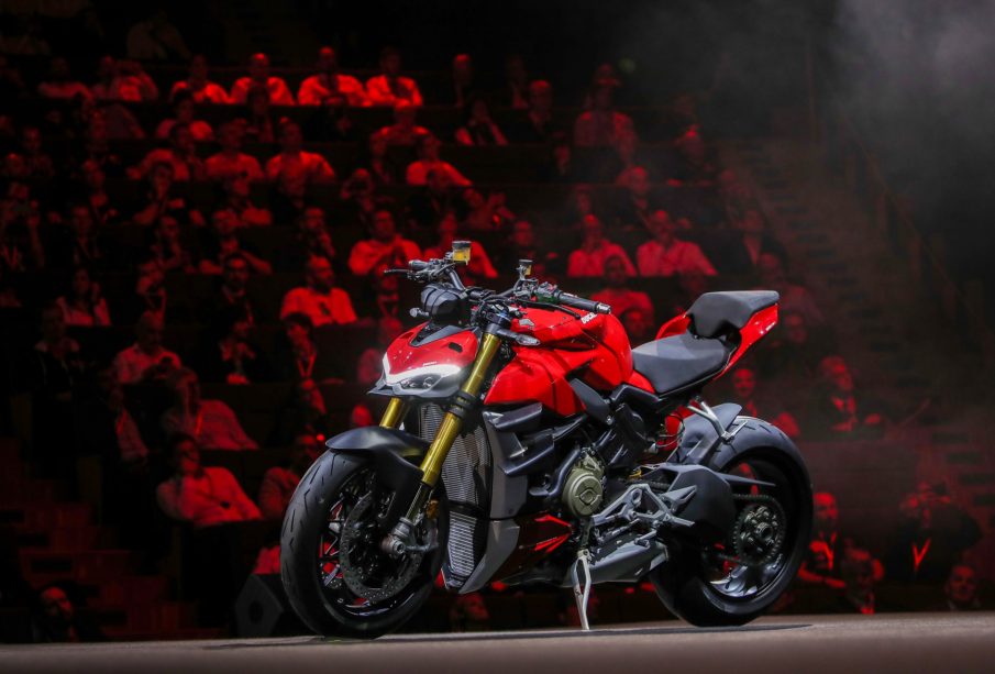 Τελευταία στη σκηνή η πολυαναμενόμενη νέα Streetfighter V4, μια εξαιρετική μοτοσυκλέτα στο πνεύμα αυτού που στο Borgo Panigale αποκαλείται “Formula Fight”: οι μηχανικοί πήραν τον Desmosedici Stradale κινητήρα των 1.103 κ.εκ., πρόσθεσαν την τελευταία γενιά ηλεκτρονικών της Panigale V4, το βάρος κρατήθηκε χαμηλά στα 178 κιλά, προστέθηκε ένα ψηλό και φαρδύ τιμόνι, αφαιρέθηκαν τα fairings και ανέβηκε η απόδοση στους 208 ίππους @ 12,750 σ.α.λ..