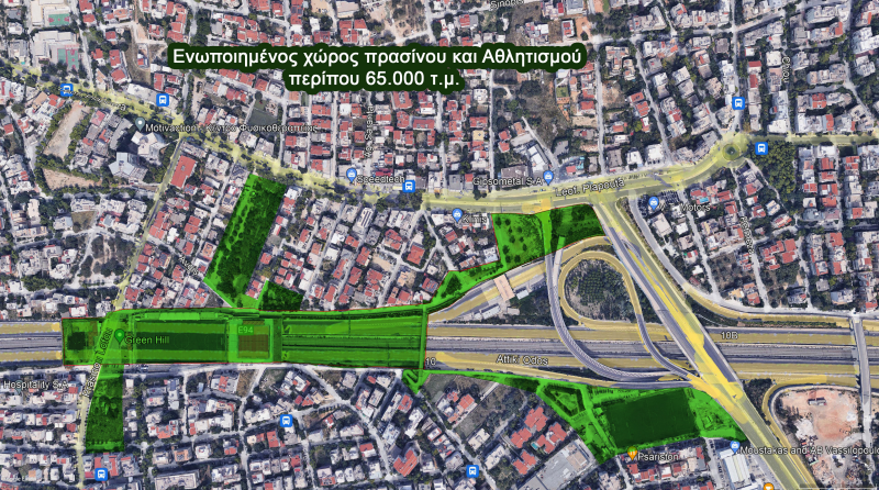 Λόφου, δημιουργώντας έναν ενιαίο χώρο πρασίνου και αθλητισμού, συνολικής έκτασης
