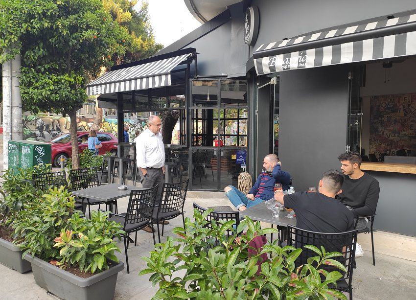 Πρώτη ημέρα επανέναρξης λειτουργίας καφέ, μπαρ στον Δήμο Ηρακλείου Αττικής. Περιοδεία δημάρχου στο εμπορικό κέντρο