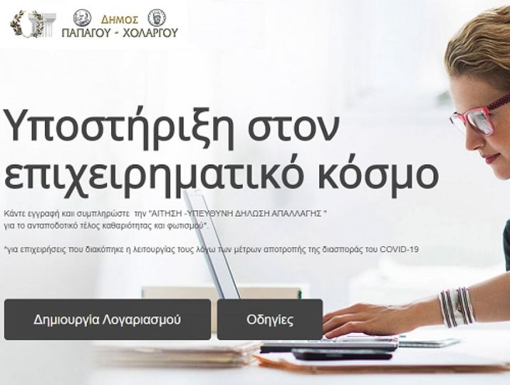 Οι επιχειρηματίες του Δήμου Παπάγου – Χολαργού μπορούν να αιτηθούν απαλλαγή από τέλη καθαριότητας και φωτισμού, χωρίς να απαιτείται η φυσική τους παρουσία σε υπηρεσίες του δήμου, αλλά μέσω ψηφιακής πλατφόρμας.