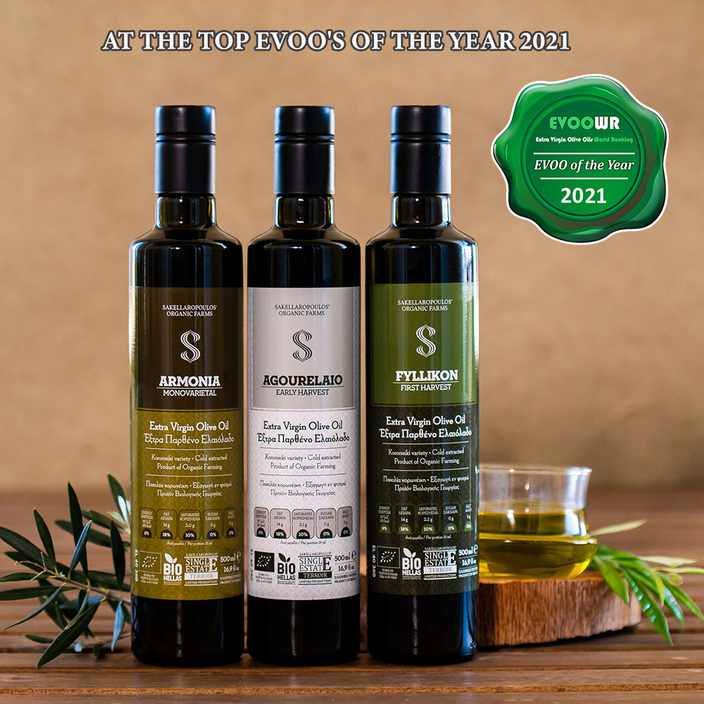 Παράλληλα στην παγκόσμια κατάταξη ελαιολάδων EVOOWR 2021, οι ελαιώνες Σακελλαρόπουλου τιμήθηκαν για τα βιολογικά εξαιρετικά παρθένα ελαιόλαδα τους στην κατηγορία τους, με πολύ υψηλές βαθμολογίες και διακρίσεις. Αναλυτικά :