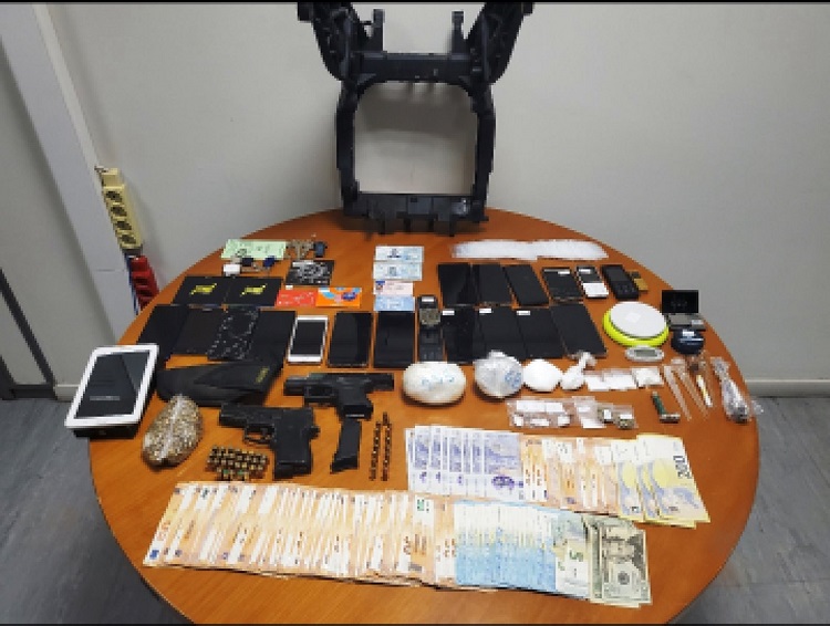 Κατασχέθηκαν μεταξύ άλλων -76- γραμμ. κοκαΐνης, -50- γραμμ. κάνναβης, μικροποσότητα κρυσταλλικής μεθαμφεταμίνης, ηλεκτρονικές ζυγαριές, πιστόλι με -15- φυσίγγια και το χρηματικό ποσό των -6.865- ευρώ