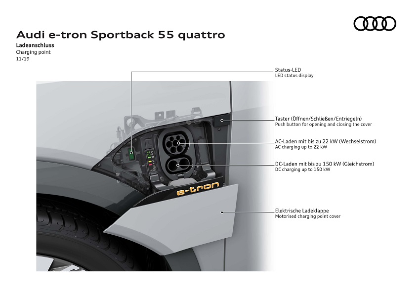 Όταν η Audi παρουσίασε το e-tron (και στη συνέχεια το e-tron Sportback) έφερε μία μικρή επανάσταση, που για πολλούς πέρασε απαρατήρητη: το e-tron ήταν το μοναδικό μοντέλο που μπορούσε να επωφεληθεί από ταχυφορτιστές με χωρητικότητα φόρτισης έως 150 kW! Έκτοτε, μέχρι και σήμερα μόνο ένας ακόμα κατασκευαστής έχει προστεθεί σε αυτό το τόσο ξεχωριστό, ολιγομελές club. Όμως και πάλι, μόνο τα μοντέλα της Audi διατηρούν ταχύτητα φόρτισης τόσο κοντά στη μέγιστη, για τόσο μεγάλο χρονικό διάστημα. Τι σημαίνει αυτό στην πράξη, για τον οδηγό των e-tron και e-tron Sportback? Πολύ σύντομο χρόνο φόρτισης όταν είναι πραγματικά αναγκαίο, για παράδειγμα κατά τη διάρκεια «ανεφοδιασμού» στη μέση ενός ταξειδιού.
