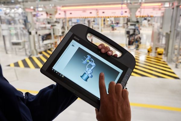 Ρομπότ και εργαζόμενοι δουλεύουν δίπλα-δίπλα στην προ-συναρμολόγηση κινητήρων, ενώ μέσα από τη συνεργασία τους αξιοποιούνται τα προσόντα αμφοτέρων των πλευρών. Τα ρομπότ έχουν τη δύναμη να περιστρέψουν το βαρύ μετατροπέα, ενώ οι εργαζόμενοι έχουν τη μηχανική επιδεξιότητα να κάνουν τις τελικές ρυθμίσεις για την ακριβή τοποθέτηση.